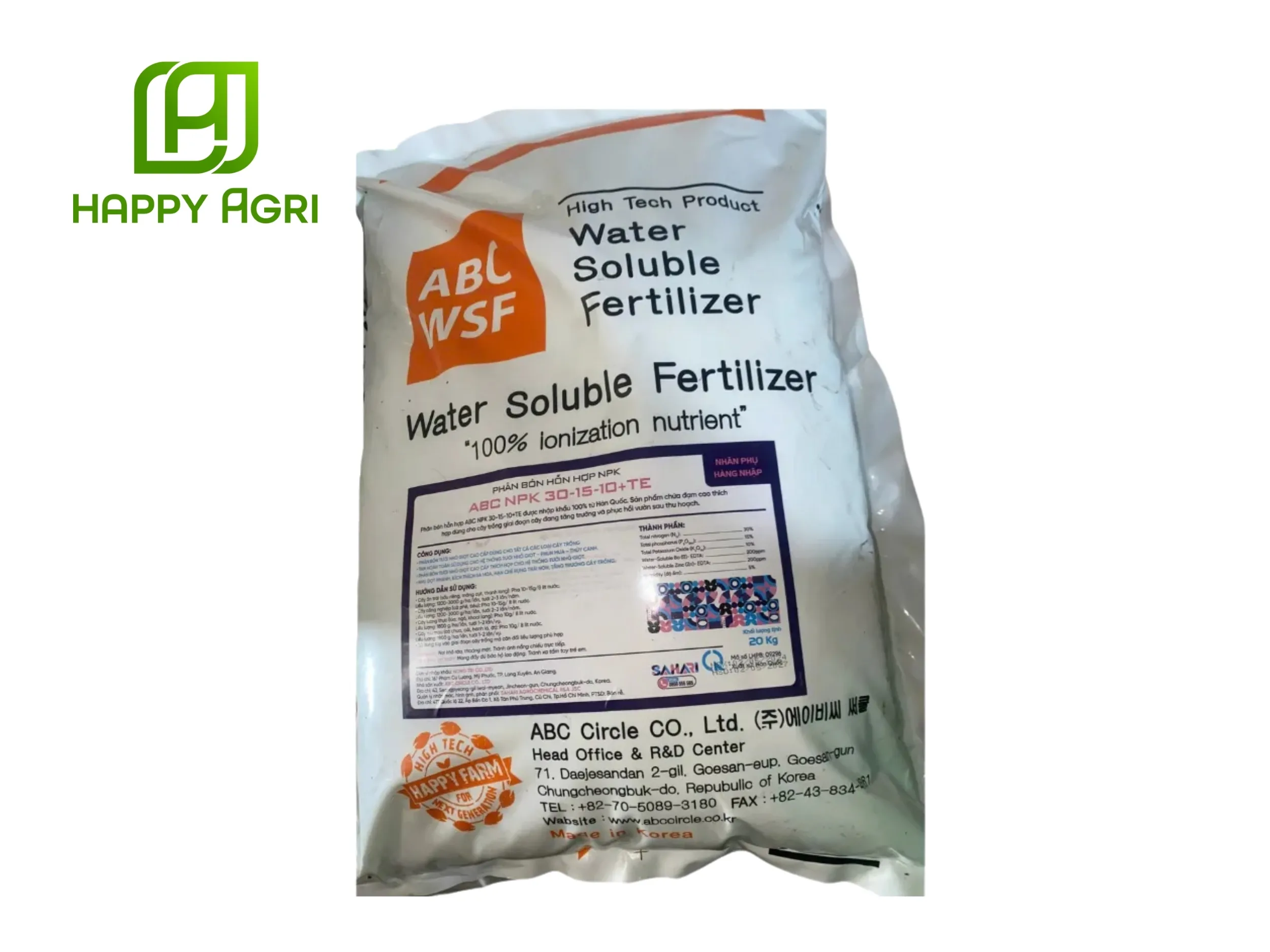 Bạn đang tìm kiếm giải pháp phân bón tối ưu giúp cây phát triển bền vững, năng suất cao? NPK HIỆU ABC NPK 30-15-10+TE – sản phẩm nhập khẩu Hàn Quốc, công nghệ cao, phân tử 100% ion hóa, đến từ thương hiệu ABC, nay đã xuất hiện! Cung cấp nguồn dinh dưỡng toàn diện, phù hợp mọi loại cây rau, trái, hoa kiểng và công nghiệp. Đã được kiểm chứng an toàn tại Happy Agri. Tìm hiểu chi tiết về vai trò, bảng thành phần, hướng dẫn sử dụng và lưu ý quan trọng ngay dưới đây!